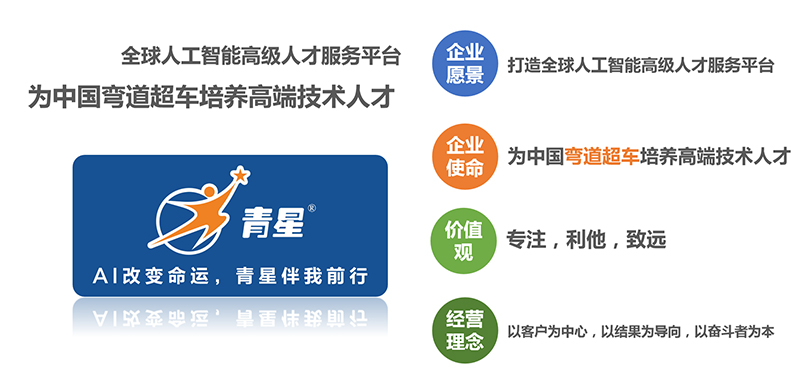 青星是一家专门从事人工智能技术研究、项目外包、AI人力资源服务的高新技术企业,依托北京大学信科学院、北大校友企业人工智能联合会,结合自身研发能力和大数据运营模式,以突破性创新“终始目标教学法”、1+N专利为核心技术,努力打造人工智能高级人才全流程服务领军企业。 | ![]() |