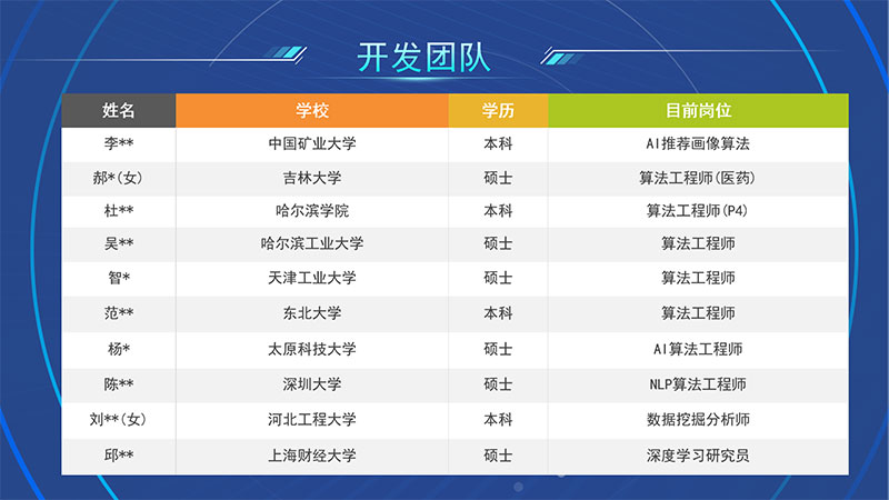 90%为985/211学历,研究生、博士为主,具有丰富的AI产品开发经验